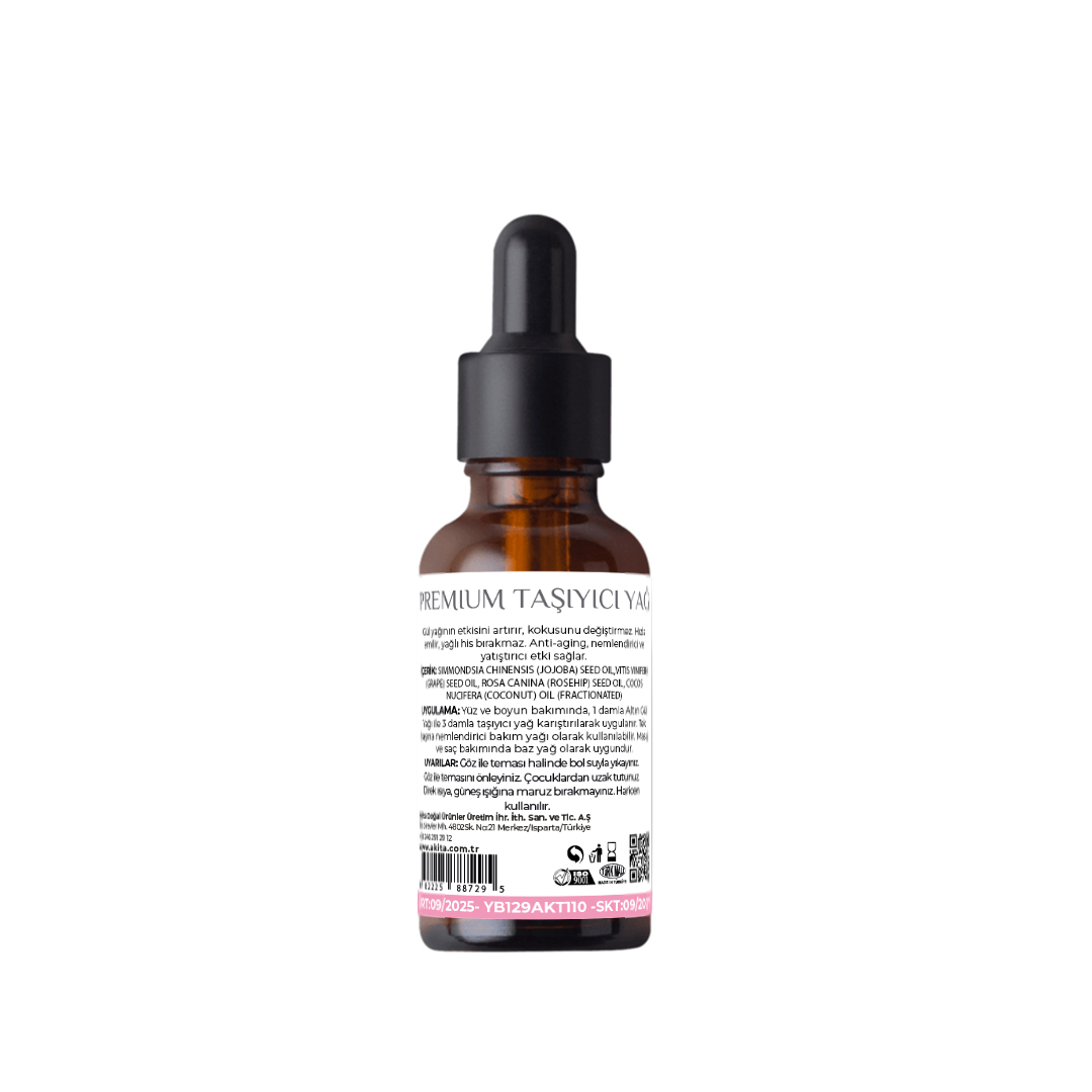 Simmondsia Chinensis (Jojoba) Tohumu Yağı, Vitis Vinifera (Üzüm) Tohumu Yağı, Rosa Canina (Kuşburnu) Tohumu Yağı, Cocos Nucifera (Hindistan Cevizi) Yağı (Fraksiyonlu).