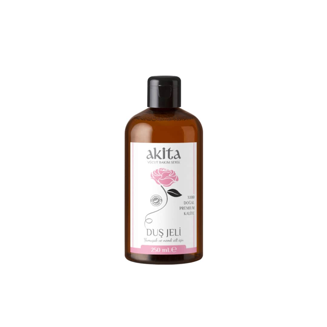 Akita Doğal Gül Duş Jeli, saf Rosa Damascena gül suyu ve gül yağı ile cildini nazikçe arındırır, nemlendirir ve canlandırır.