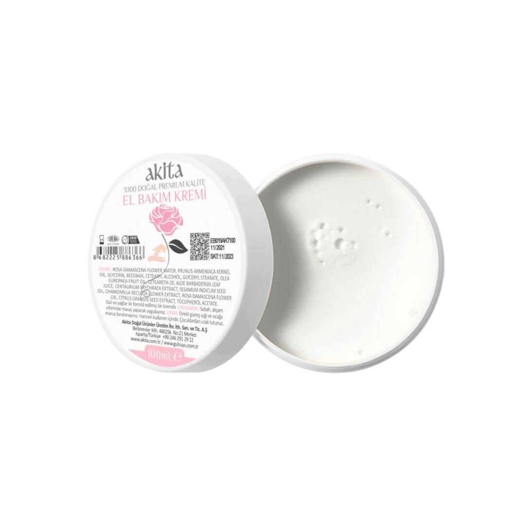 Isparta Gülü'nden hazırladığımız cilt bakım serisinden Akita %100 Doğal El Kremi ellerinizin cildini dış etkenlere karşı korur.