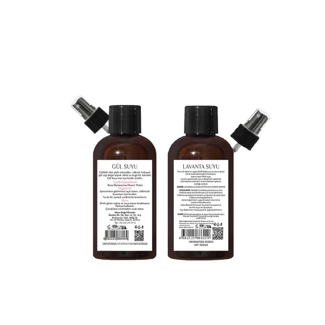 Doğanın iki eşsiz kokusunu günlük bakımına dahil et 💮 Akita Doğal Gül ve Lavanta Suyu (Cam Şişe 2x50 mL), sabahları gül suyunun canlandırıcı etkisiyle güne ferah başlamak, akşamları ise lavanta suyunun yatıştırıcı etkisiyle cildi ve zihni dinlendirmek için tasarlandı.