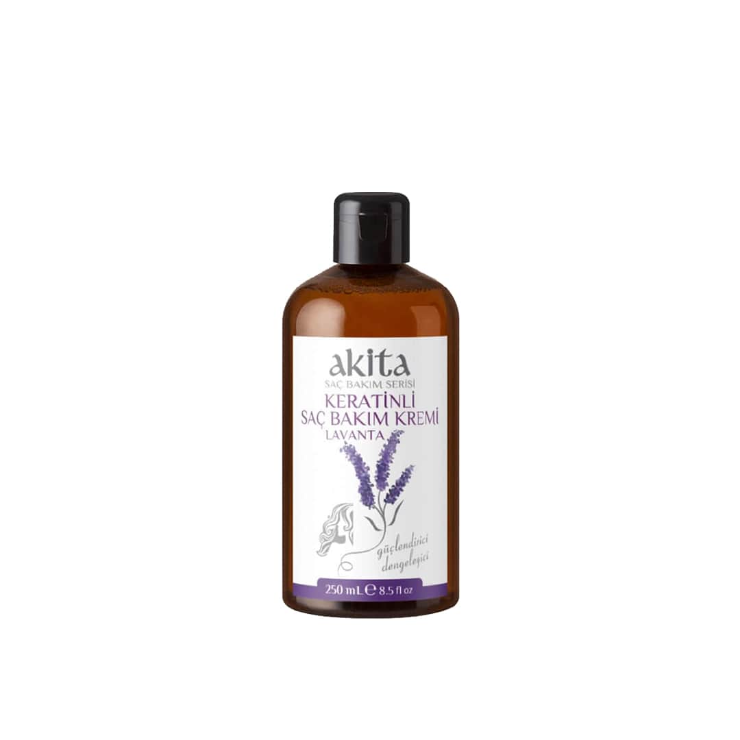 Akita Doğal Keratinli Saç Bakım Kremi – Lavanta, saf yağı alınmamış lavanta suyu, bitkisel keratin ve doğal yağlarla formüle edilmiştir.