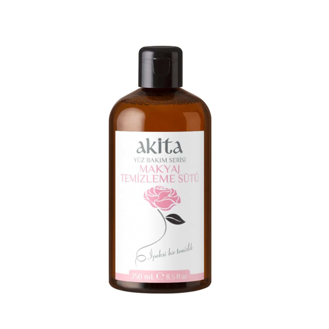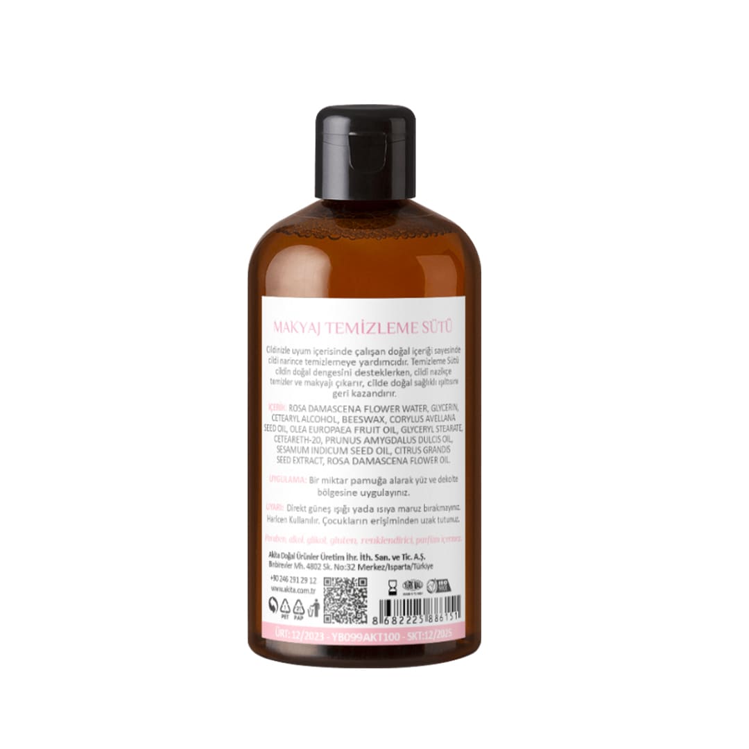 %100 doğal içerikli Akita Gül Makyaj Temizleme Sütü, saf Isparta gül suyu, tatlı badem, zeytinyağı ve fındık yağı ile formüle edilmiştir.