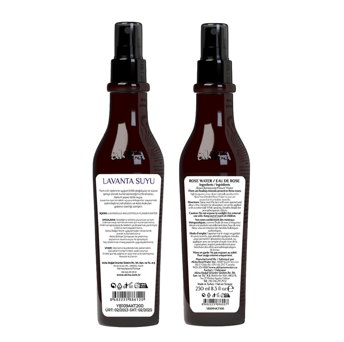 Akita Doğal Yağı Alınmamış Gül Suyu ve Lavanta Suyu,