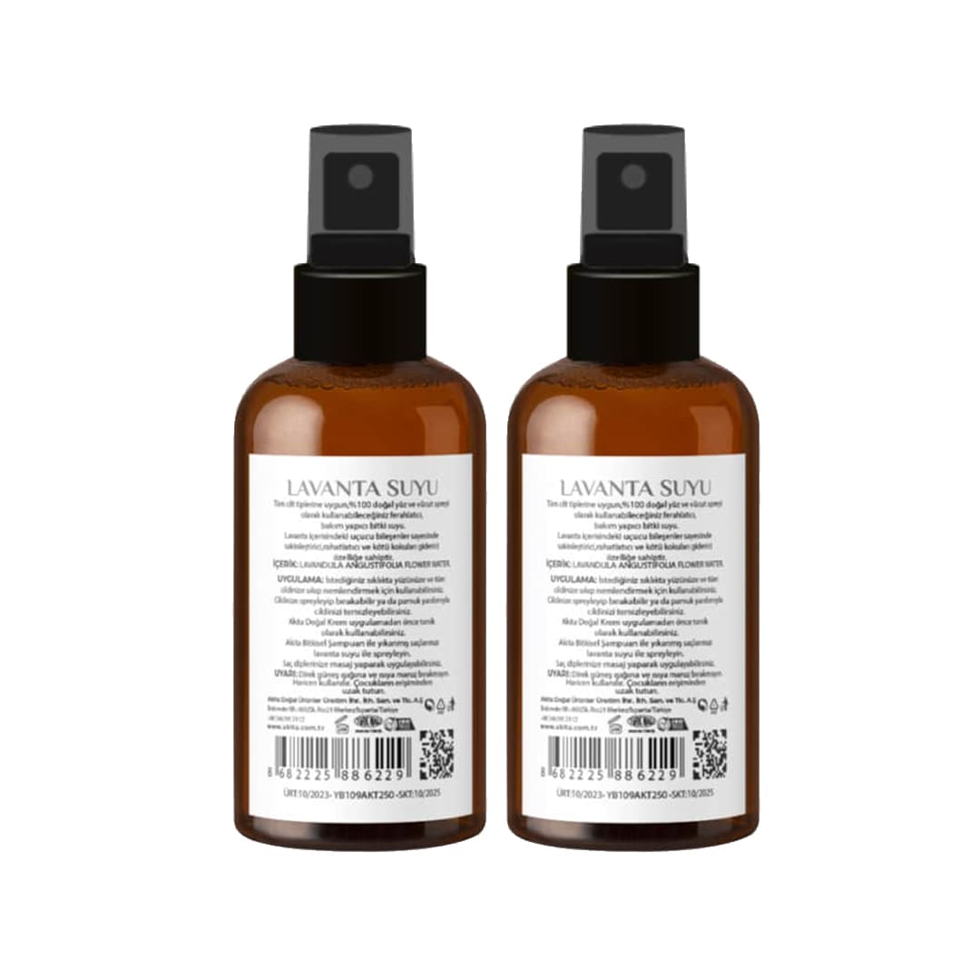 Akita Doğal Yağı Alınmamış Lavanta Suyu Cam Şişe 2x100 mL