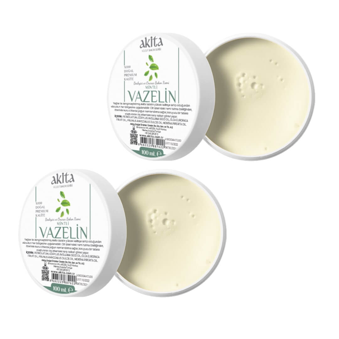 Akita Onarıcı ve Besleyici Vazelin Mint, doğal yağlarla zenginleştirilmiş formülüyle cildini yoğun biçimde nemlendirir, onarıcı bakım sağlar ve ferahlatıcı nane kokusuyla canlandırır.